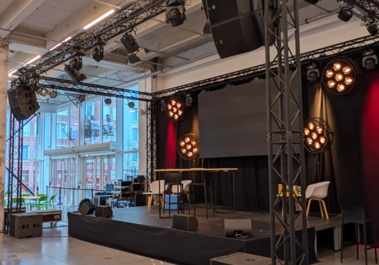 Son, éclairage, vidéo et scène pour entreprises et agences.