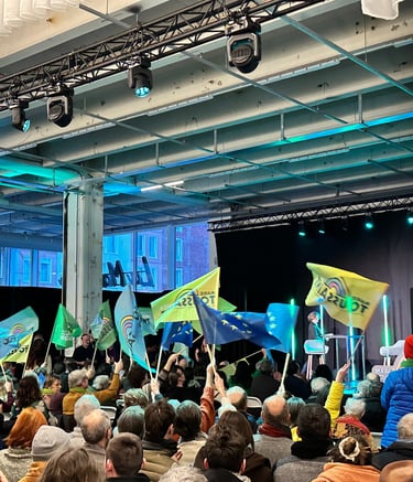 Sonorisation, éclairage, vidéo et scène pour l'accueil de personnalités politique.